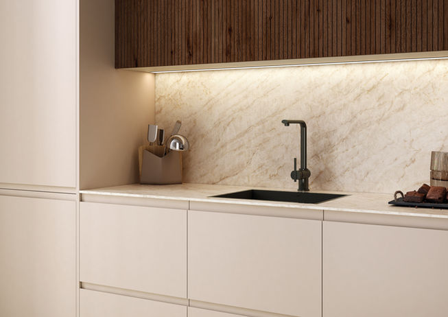 Compacte bladen bootsen natuurmaterialen zoals marmer, hout en steen getrouw na, en blijven toch betaalbaar.